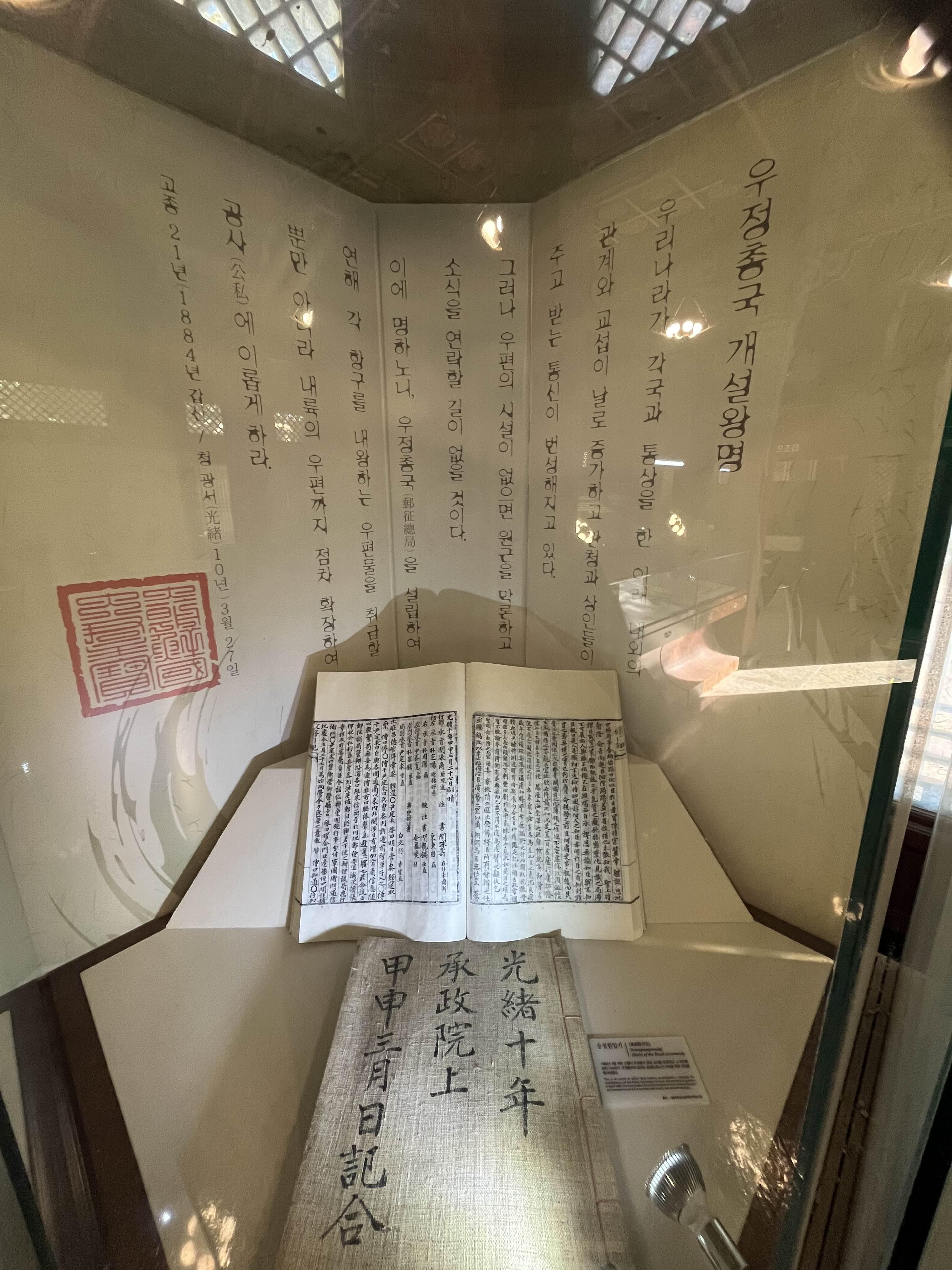 별 생각없이 들어간 무료관람 유적에서 익숙한 이름들이 눈에 띄었다. 갑신정변의 주인공 김옥균, 박영효. 홍영식도 함께 거론되는 이름이었구나. 심지어 우정총국 초대 국장이었구나.